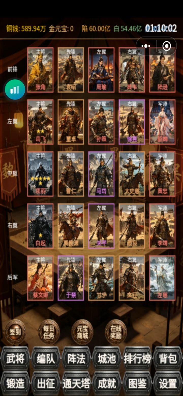 作者真的是我见过最勤快的游戏开发者!每天都在更新玩法,还认真参考玩家意见调整优化,态度超赞!还可以离线挂机解放双手,不用一直肝,副本、关卡、武将搭配都很有策略性,玩着特别上头,作者审美在线,赞一个