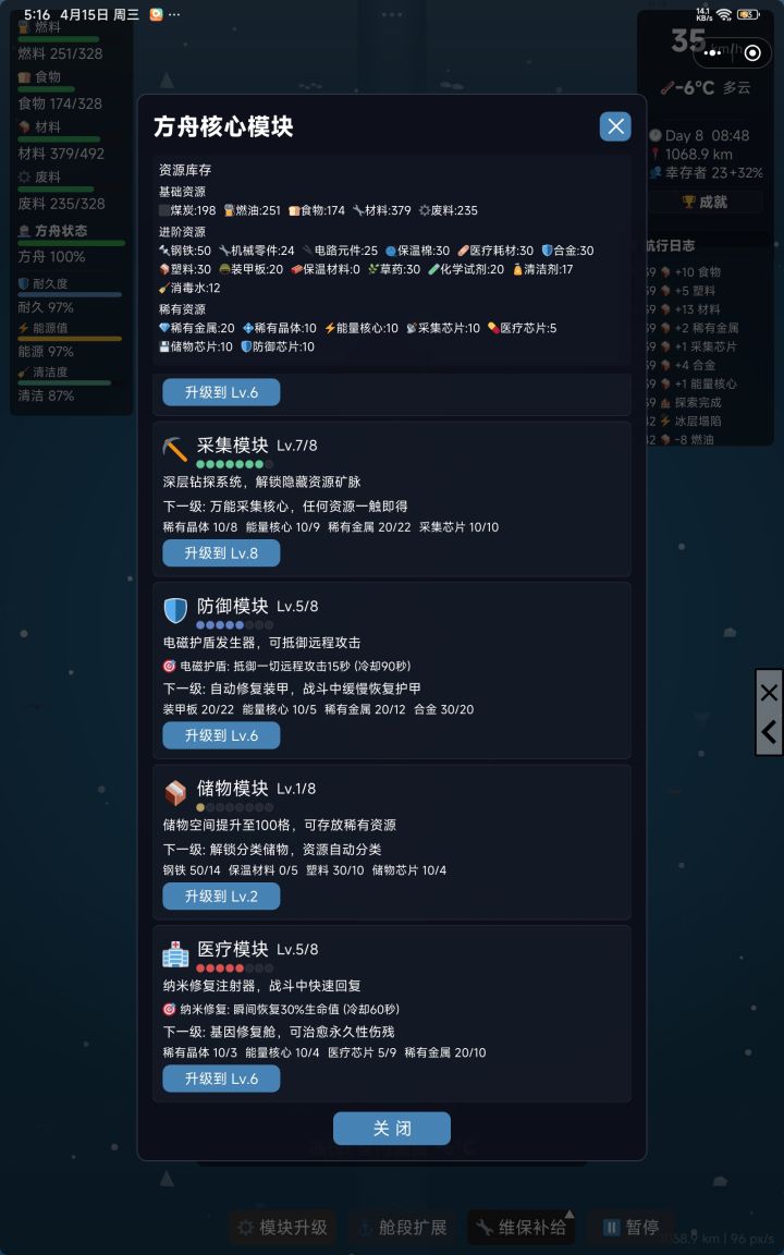 原本模块升级都升到快满级了,保存游戏退出,再进游戏模块都变为1级。感觉自己的心血都白白浪费了。太多bug,不推荐,退游了。