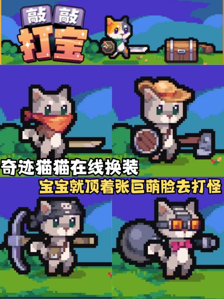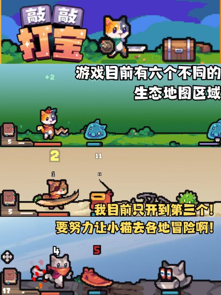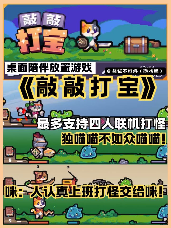 人,有了小猫后会想给猫打扮啊! 奈何我家反骨咪配不爱配合无法选中,幸好我还有这只努力打怪的乖咪咪! 游戏最多可以支持四人联机,和朋友变成一队毛茸茸军团,太可爱啦! #我的游戏日记vol14 #敲敲打宝 #放置游戏 #单机游戏 #发现好游戏 #游戏安利 #游戏推荐