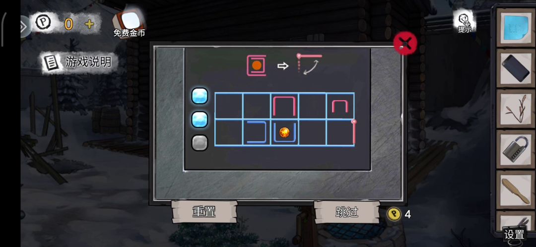 静态图,可能画的有点乱,凑合看吧。 跟着、数字颜色、对应的、箭头颜色走。 最后一图,当时没解开,过了很久后再打开游戏,图就变了。临时就不研究解法了。 下图,缺了一步。第6步后,6.5步,把最下方的、上移一格。后边正常。