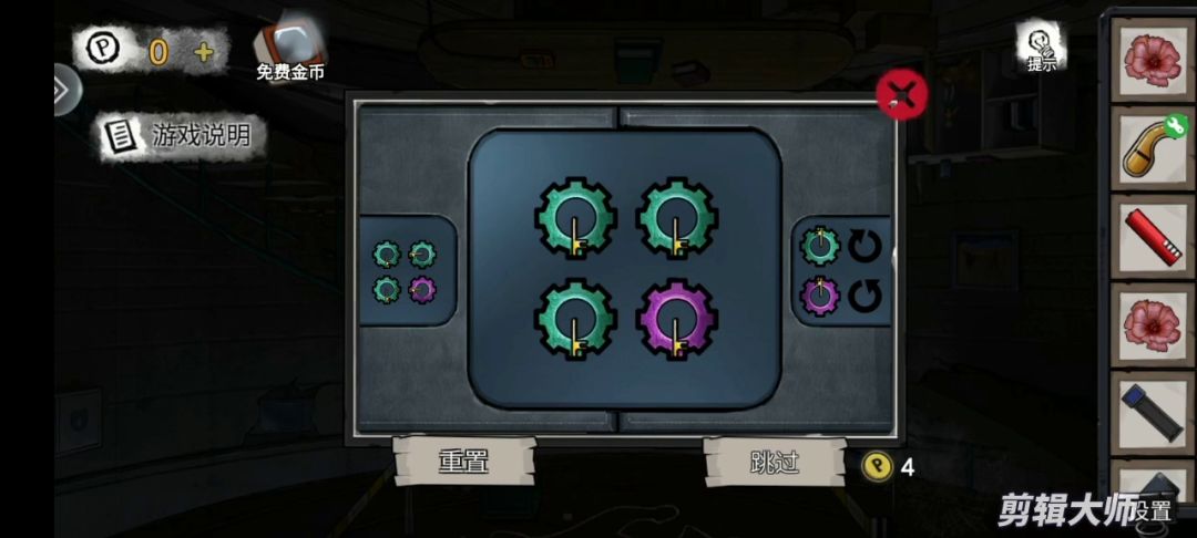 齿轮自己打开了 黄色指针指哪个哪个就跟着转 前两个比较简单瞎点的 最后一个我记得是先点一下最后一个紫色的😢(emmm完了我忘了,反正前两竖列的都没点,第二下应该是最后一竖列绿色的😥