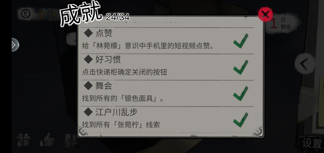 哎,最新这一章有几个游戏确实有点难,用金币过的,大伙重新下载玩的注意一下能力的训练哈,这一章最后对话要求,推理30,沟通30,观察26