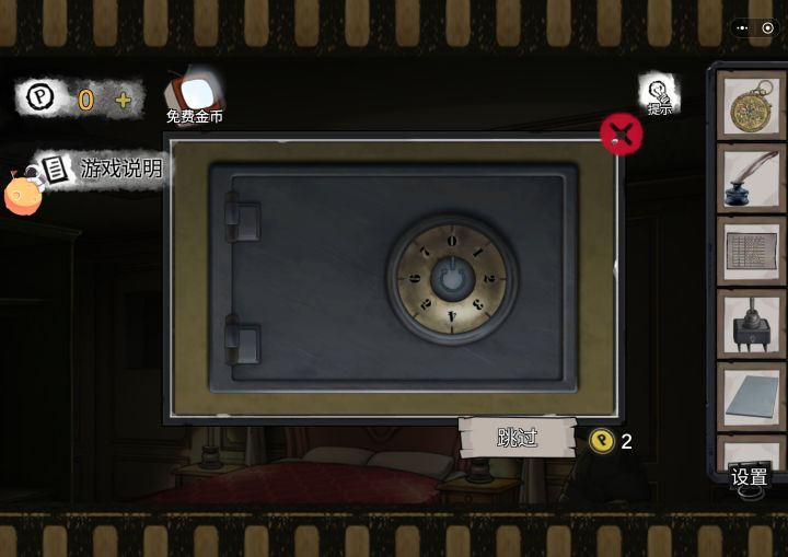 狮子头机关,根据图片线索,点一下鼻环,等两秒(可能是点两下硬币按钮)、再点两下鼻环。两只眼睛都亮了,门就开了。