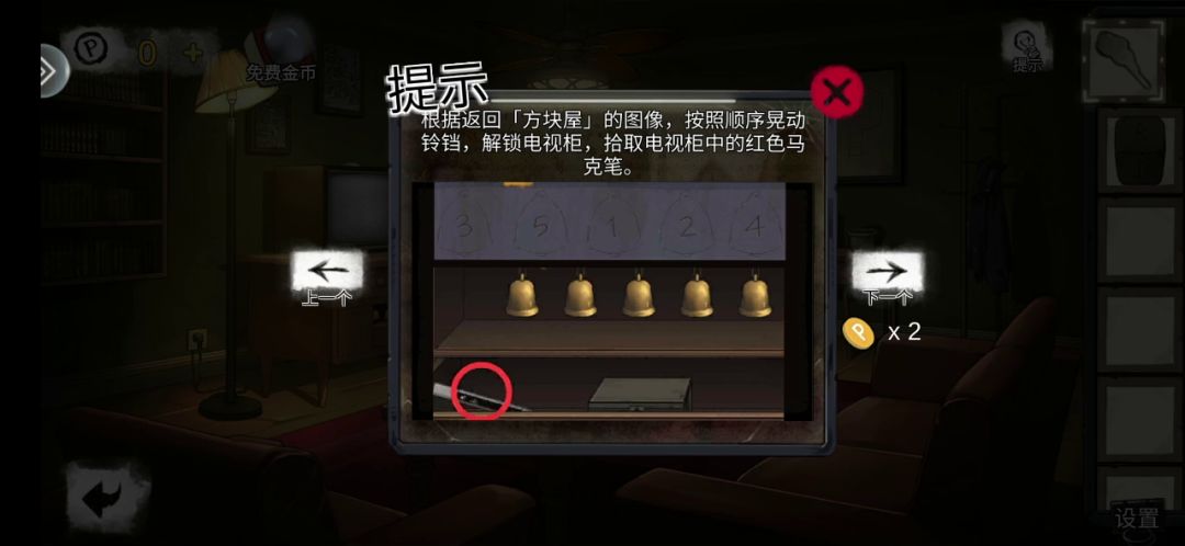 到了这个铃铛,我在墙上看了确认了无数遍35124 😶,就是不对,最后不得不提示,结果提示和我想的一样,按照35124的顺序敲响铃铛,结果还是不对?🙃 是我的问题吗?求求大佬帮忙看看!