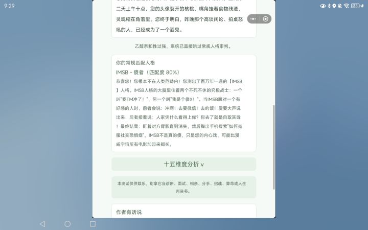 感觉挺牛逼克拉斯的,反正就是特别好笑吧,测了15次都是不一样,反正是很推荐