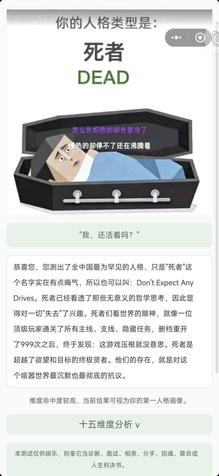 感觉挺牛逼克拉斯的,反正就是特别好笑吧,测了15次都是不一样,反正是很推荐