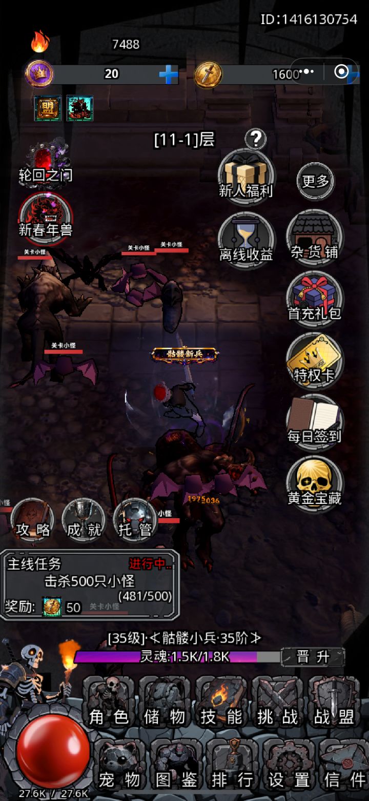 竖屏暗黑的挂机游戏 喜欢这种风格可以进来试试 挂机玩了一会感觉还行 挂机休闲无聊的可以玩玩