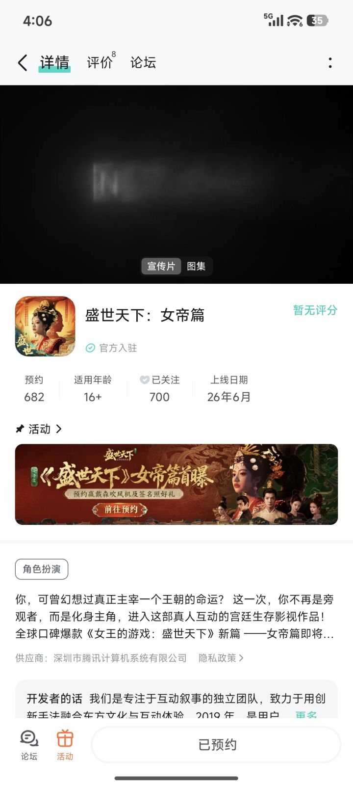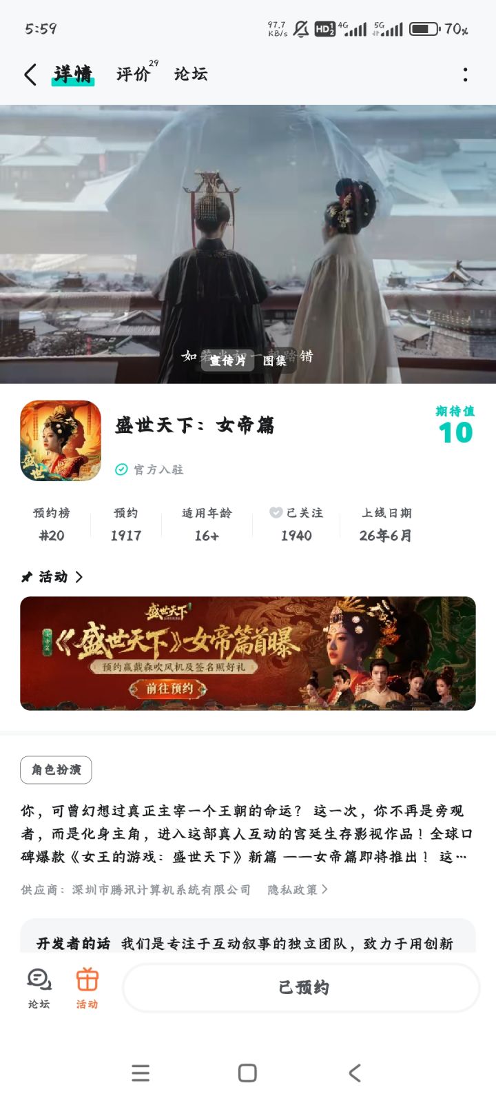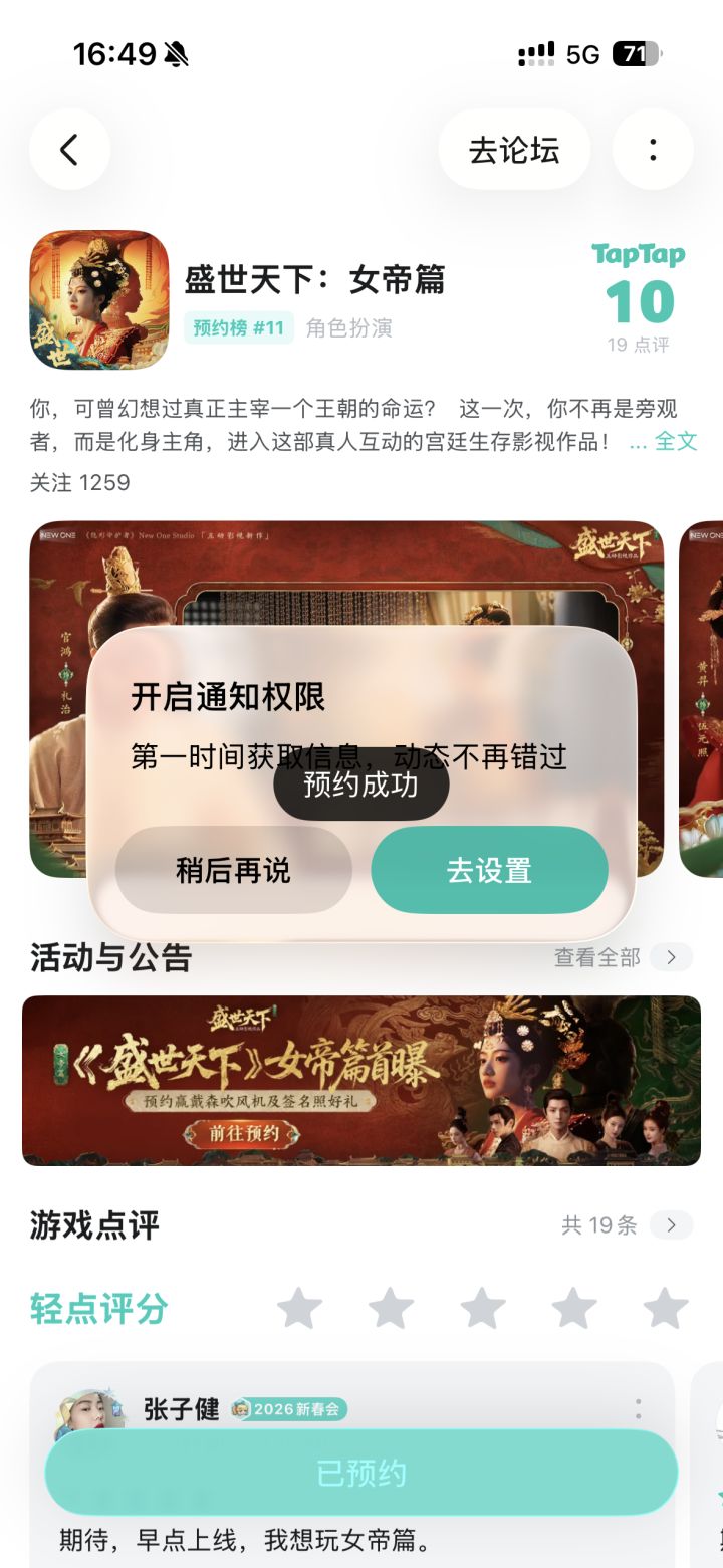 终于有女帝篇的消息了,被彭十六搞了一下,第一部的剧情都忘光了,再去重温一下。希望可以提前上线,拖了这么久,热度都掉的差不多了,别在出什么事了#盛世天下女帝篇