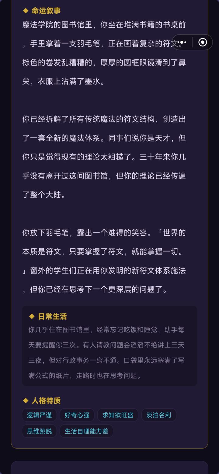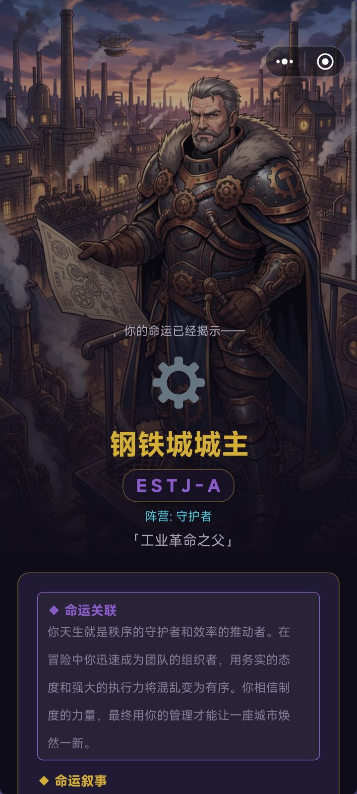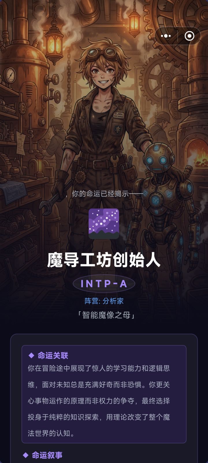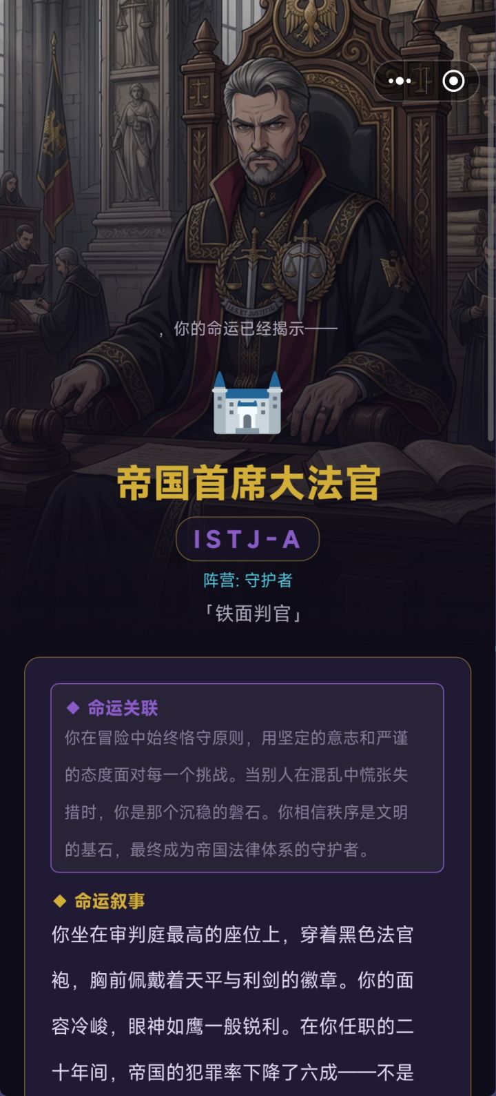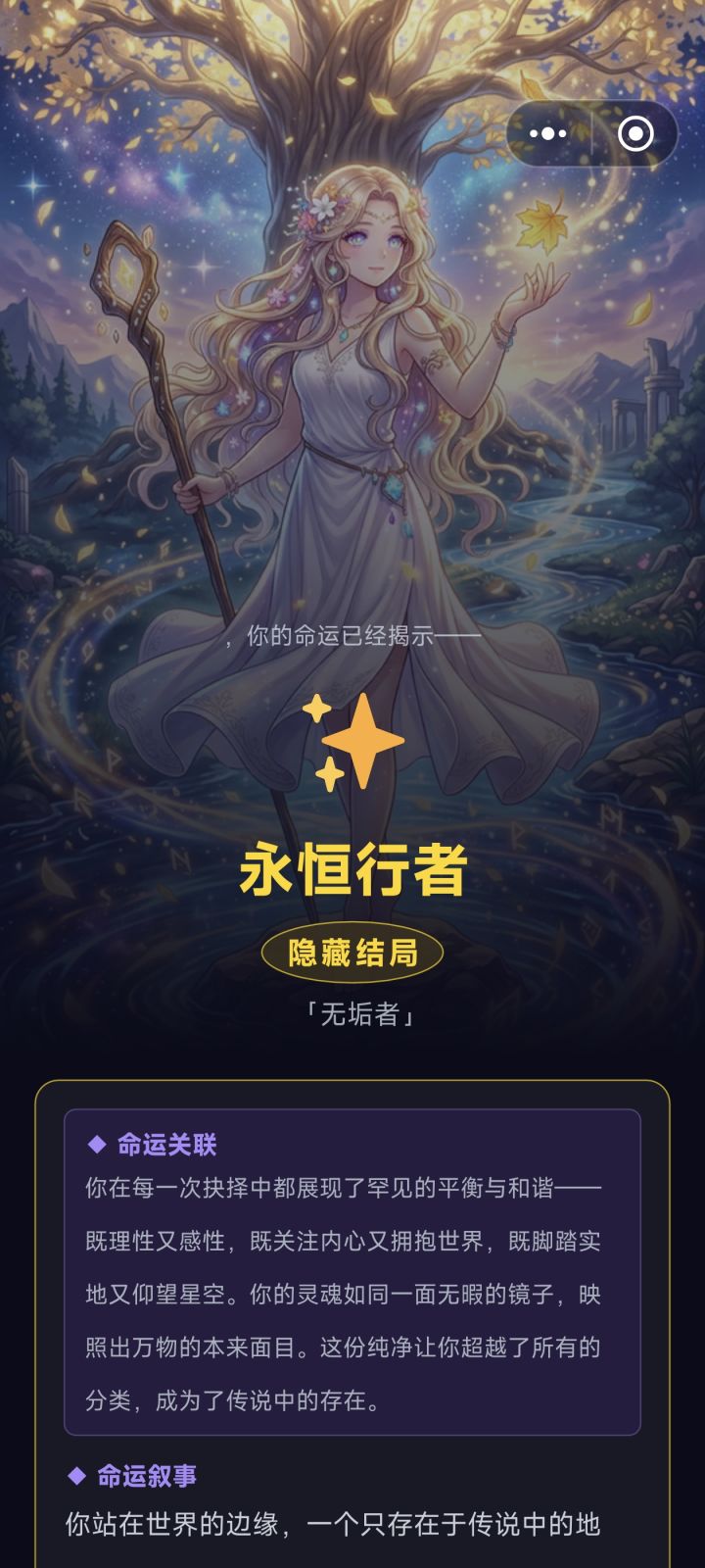 感觉通过故事自己的选择和其他类型的很不一样,会更有代入感,挺不错了就当看故事了,最后测出来是这个