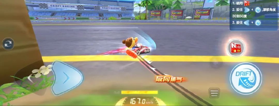 对于玩道具赛的车友,是不是经常遇到导弹在手,而前方没有对手的情况,这个时候你是选择丢弃道具呢?还是复位等待对手?或是留到下一个U弯再出手? 不管选择哪种方式,对于争分夺秒的道具赛来说都是损失,而今天的技巧教学就是来完美解决这个问题的~ 好了,我们直接进入正题 今天宝宝给大家带来就是竞速花式技巧 也是道具进阶技巧的——“镜漂” 镜漂的作用是让车子能够快速地调头,多用于道具赛中进行导弹的反打 在竞速赛