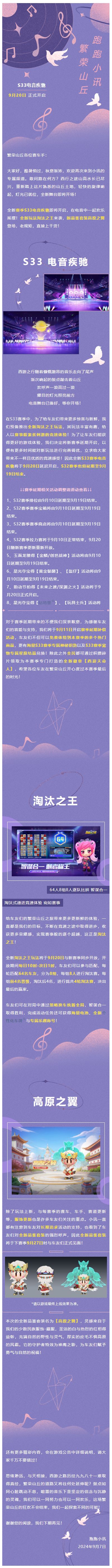 亲爱的车友们:新赛季S33电音疾驰中,我们预备推出全新淘汰之王玩法,为了有更充裕的时间能对新玩法进行完善调优,让车友们获得更好的游戏体验,我们决定将S33新赛季延期至9月20日开启,S32赛季也将相应延期至9月19日24时结束。9月9日-9月19日期间,每日24时巅峰榜前1000名玩家(微信区和QQ区各1000人),都会发放【西游之巅】徽章奖励,每个账号最多只能收到1个徽章,徽章将于9月20日