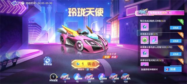 3月27日,全新传说竞速赛车【蔚蓝/烈焰之影】乘风破浪席卷山丘! 在S30赛季浪漫亚平宁里,我们又和久违的影刺见面了!伴随着熹微的晨光,【蔚蓝/烈焰之影】降临在这座美丽湿润的半岛上,似油彩般纯粹,连锋利的棱角也带着一丝温柔,它轻盈小巧,可以丝滑过弯轻松贴边,将力道与美极致结合。 本次活动同样可以领取主动加速3.0和5.0两个尾翼,【蔚蓝/烈焰之影】搭配专属尾翼后更是如虎添翼,化作春日里的狂风,刮向