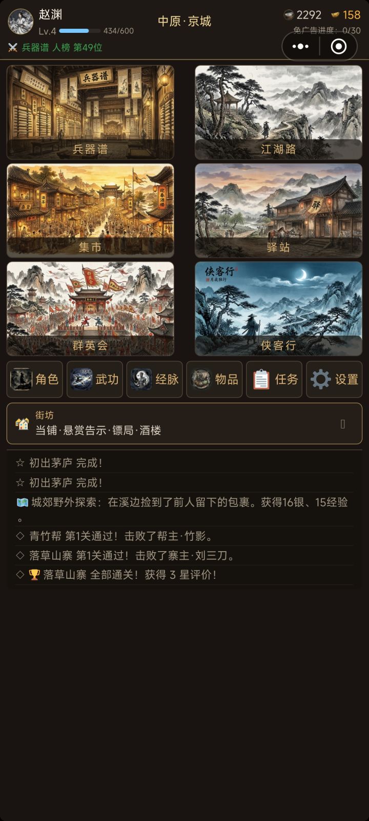 好玩!喜欢玩这种武侠风游戏,背景音乐和音效也做得不错。我接着玩,作者保持更新