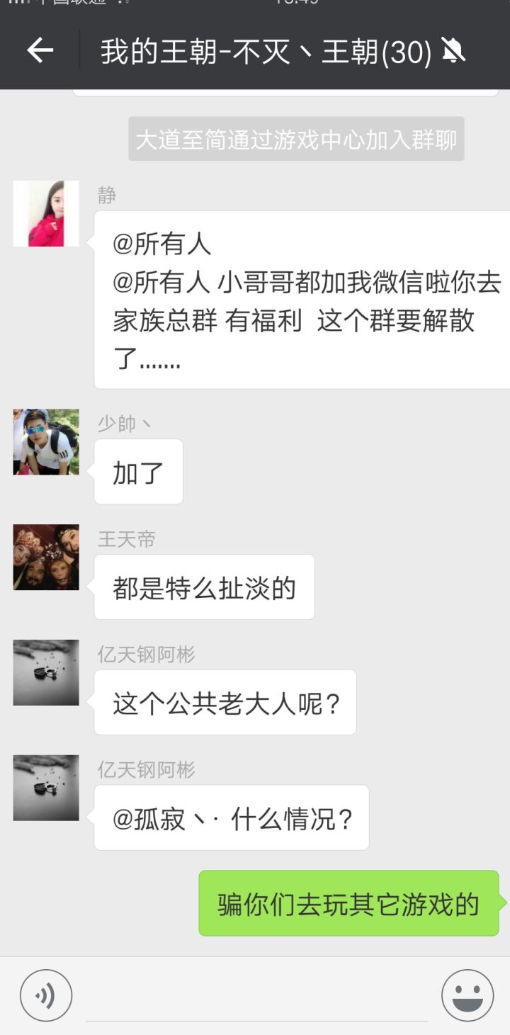 从游戏内拉人进微信群,然后开始利用福利转移到他们的公会大群接着推广员男扮女装搞个女性头像来加你好友,准备忽悠你去他们自己代理的游戏终于露出狐狸的尾巴了😂他们也是无辜的,只是他们的工作流程而已,哎,令人唏嘘,别做推广员男扮女装了,来我们这里做游戏创造者一起真正为玩家制作好产品吧折扣群里折扣号满天飞,你充值100需要100人民币,人家充值可是只需要半价,这样玩,真是没办法继续玩下去啊!这些专门
