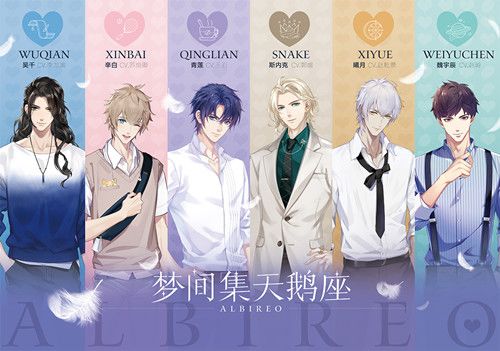 第一当然是我和青莲锁了!(我跟青莲属于一见钟情的那种,皮皮鹅你懂吧,懂吧~我现在一直都能想起来他胸前一晃一晃的坠饰,特别想听他那个低又性感的声音,就好像在耳边呢喃一样~要不是鹅你提起来,我都忘了那个酒后的莲莲哈哈哈哈哈当时爆笑直接,不过因为比较黑历史所以忘了吧_(:з」∠)_)第二是我和辛白锁了!(发小这种关系真的好吸引人啊~虽然现实中没有吧,不过设定里面的小白真的好可爱啊,走哪跟哪那种,又阳光,笑起来特别治愈~)第三是我和斯内克锁了!(一开始不爱吃这个傲娇,不过天天在店里摇来晃去的也难免慢慢接受,而且这个蛇蛇吧,其实你吩咐他做事他也是会做的,嘛,我比较记得的是一开始他就偷摸的在店里,还捂嘴!噫。。。仔细一看蛇蛇还挺好看的其实_(:з」∠)_)第四是我和曦月锁了!(虽然他这个家伙到处拈花惹草的,不过也难怪嘛,设计师来的,其实还挺正派的,好多场合也是不得不去,我记得的是跟他过生日的小故事,咱还是去给他解围的,不过咱比较害羞也没特别多跟他单独接触_(:з」∠)_)啰哩啰嗦的一大堆,不过我真的真的特别想他们,也不是说花心,确实这几个人物设计的挺好的~是我喜欢的类型。我现在乙女游戏都不玩了,就等着天鹅座了。怎么说呢,之前的乙女游戏要同时跟好几个人好,而且是特别亲密那种,我就有点玩不来。天鹅座吧,虽然是都有点故事的,不过还没有和谁都很亲密那种,我觉得挺好,我可以选择性的跟喜欢的小哥哥亲近一些。我真的特别特别想念青莲,黑发,白衬衫,低少年音,真的好爱啊!