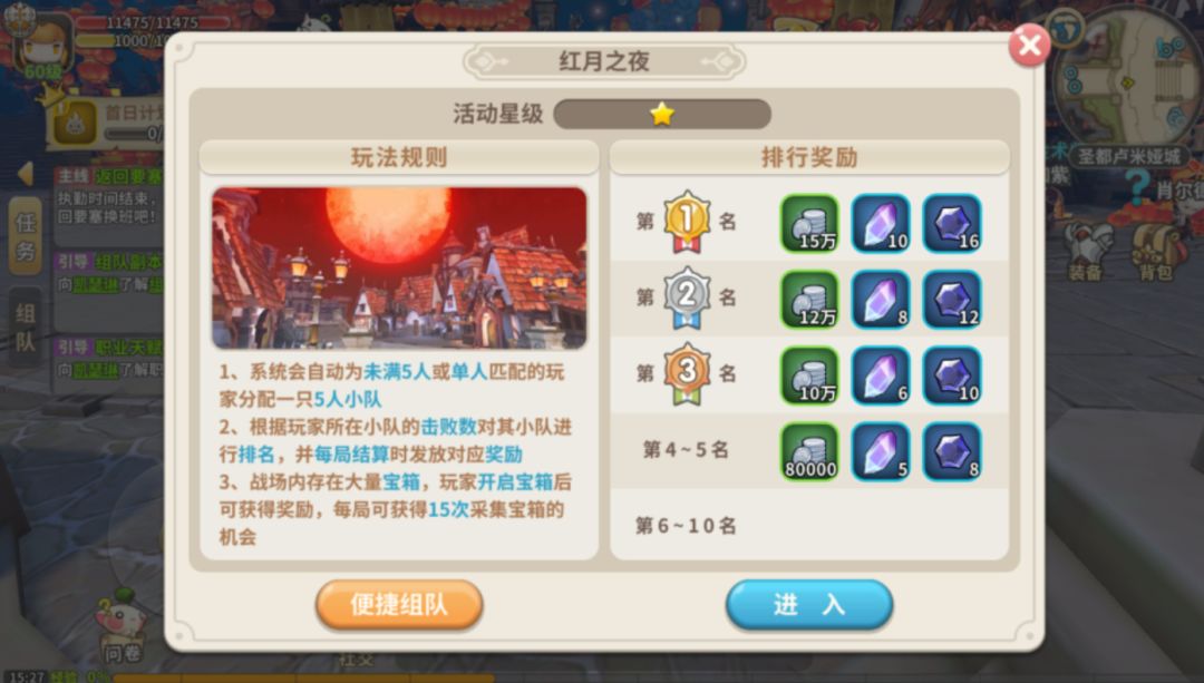 盛大游戏首款3D萌系超自由冒险手游《光明勇士》,凭借其Q萌的画风、高度自由的趣味玩法和生动奇妙的异世界,上线后获得不少玩家的青睐。如今,卢米娅大陆即将即将迎来一场全新的风暴,届时卢米娅大陆的某处将产生红月遮天之相——全新活动“红月之夜”即将登场,各位盟主准备好了吗?下面就由小编为你详解! 【红月降临,争夺榜首】 玩家可以通过组队或单排的形式,参与“红月之夜”活动。红月之夜是一个跨服型活动,在进入活