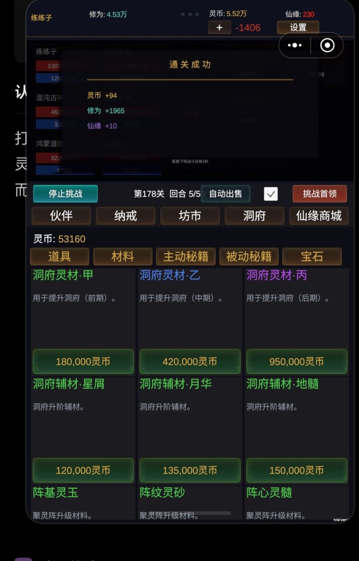 打到170关的小怪才给四个灵石。boss只给90龟灵石。这个奖励是认真的吗?而且洞府材料动则十几万。