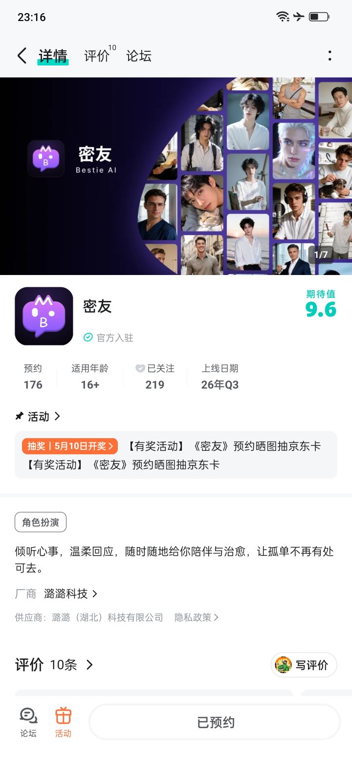 论坛专属活动已启,速来参与赢福利!打开 AI 聊天,遇见心动帅哥,每一句都聊到心坎里【参与方式】1.点击关注预约游戏并发新帖晒截图 2.在本帖下方评论区分享发帖链接即可【活动时间】即日起至5月10 日【活动奖励】随机抽取1名符合参与条件的玩家获得:50元京东卡一张【活动规则】1.内容禁止涉及暴力、色情、政治、恐怖内容,违者做删帖处理并取消活动资格;2.回复内容需与活动主题相关