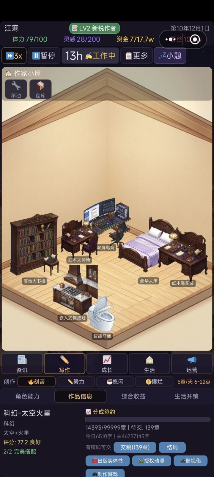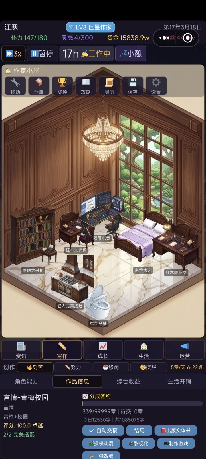 📢 更新公告 | Bug修复 & 体验优化感谢各位作家的陪伴与反馈!本次更新主要集中在问题修复和手感优化,详情如下:1.大量阅读 修改为消消乐小游戏从原先的消耗3000元修改为【消消乐】小游戏。小游戏期间时间仍流动、创作仍继续。根据游戏分数,+2点以内的随机能力。2.新增创作期间是 头脑风暴 小游戏连载期间可以点击头脑风暴,进入障碍躲避小游戏。小游戏期间时间仍流动、创作仍继续,且不消耗体