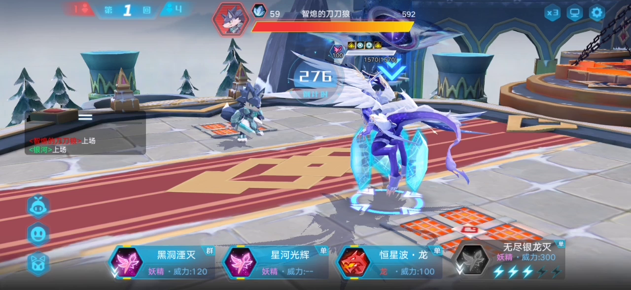 本来想用可兰试试能不能单过,可惜技能PP值不够。然后就用了终结兔,没有终结兔可以用阿波罗,但是要注意换亚比时候对面大招。阿波罗主要用三技能打伤害和清对面提升属性。