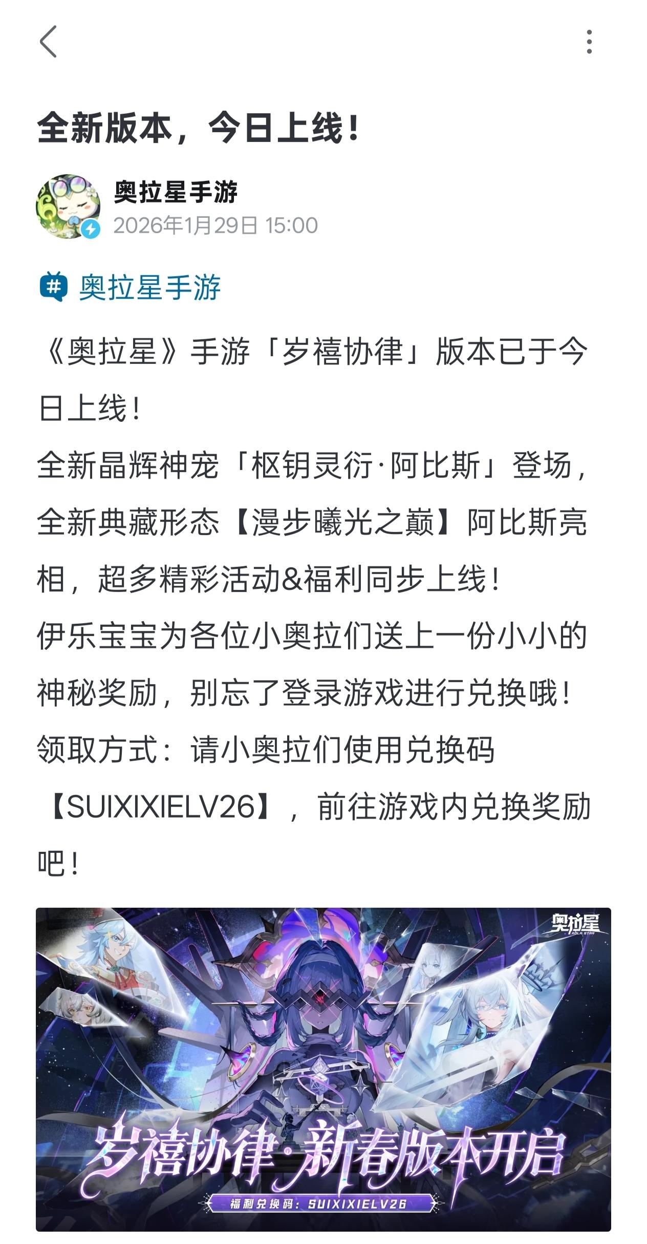 出处:在BLBL奥拉星手游官方号,截过来的#奥拉星岁禧协律