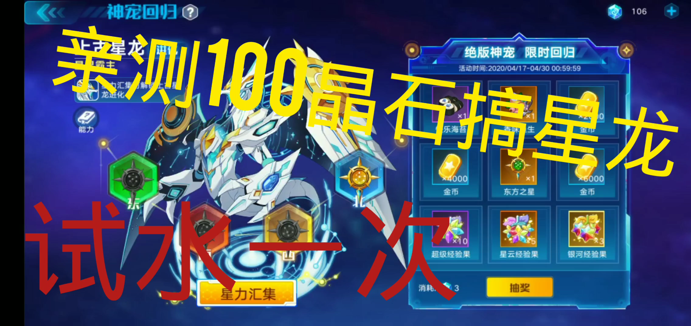 试水星龙啦!想弄回归的氪拉来参考一下hia,非酋在此!