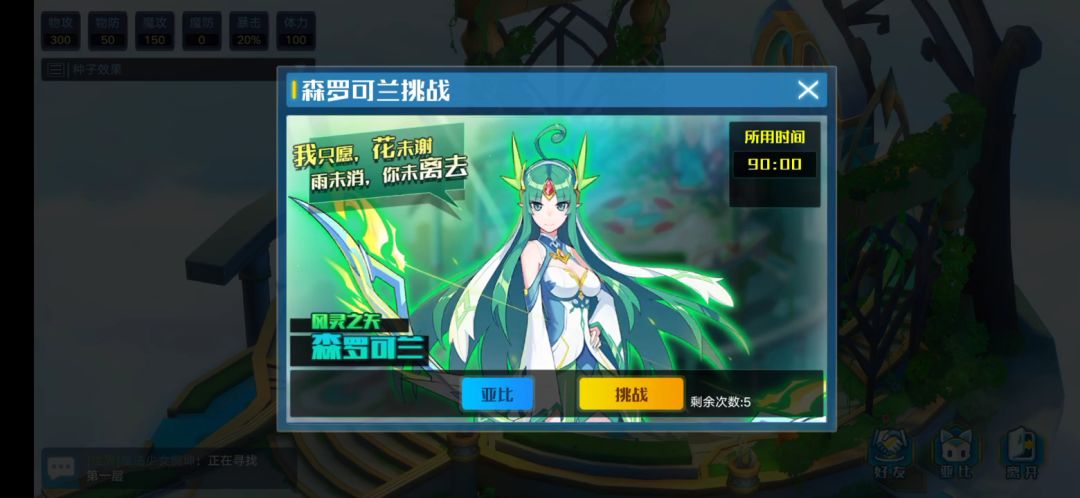 出战亚比:羽月,离渊,黑小问(这把没用到,可以换个强力点的),花仙 描述:花仙用花苞影森的时候是对自己最有利的时机,这个时候打她,自己掉属性没事,主要是靠buff打伤害,利用羽月的烧伤和离渊的寄生,记得让其他亚比抗伤害,别让羽月抗。