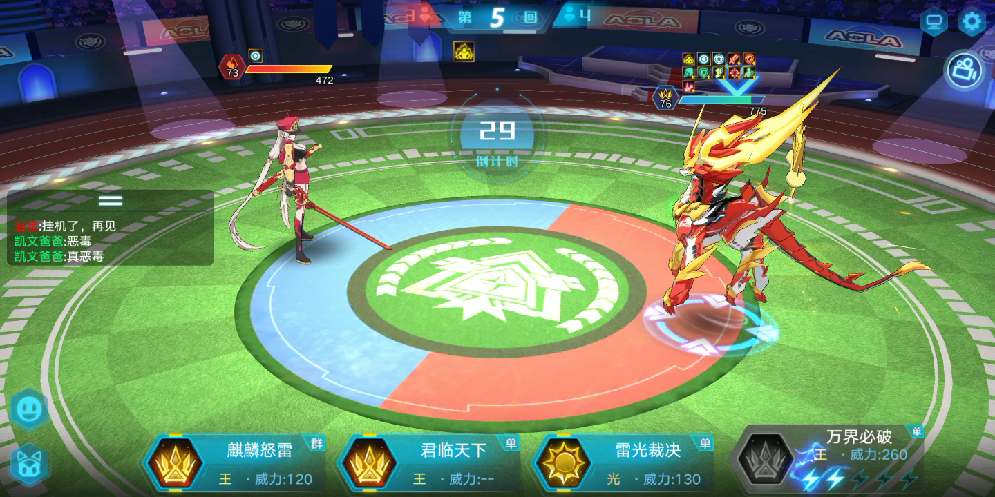 大致过程在视频里,细节就是利用好力量王的一技能,限制3000血以下的离渊大量回血,然后自己多注意自己的血量就稳了!这里提一下,拥有六级大招的力量王的大招对离渊是有伤害的,如果离渊还剩几十血可兰被冻住了,可以用力量王收尾!