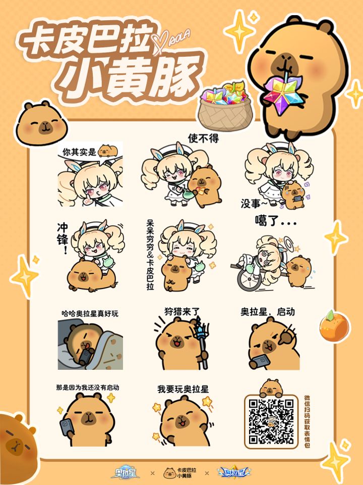 『卡皮巴拉小黄豚』×『奥拉星』联动表情包现已上架微信表情包平台。领取方式:①微信扫描下图二维码即可领取。②前往微信→点击【我】-【表情】→搜索【小黄豚之奥拉星篇】并添加,即可领取。#奥拉星 #奥拉星手游 #今天游戏圈发生了啥