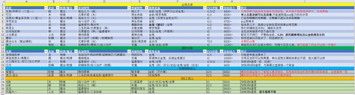 鉴于原帖形式太过于复杂,以后通用excel表格图来更新5.20版本。奥丁进入必练区,调低弟弟龙pve评级,星龙备注更新,新增132上位替代--天照新增魔系两兄弟太一进入玩具区警告:预算不足者,不要去搞弗丽嘉-----------------------------------------------------分割线-----------------------------------