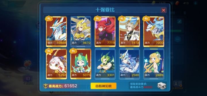 10强图在这,智慧王,,可兰,全是保送计划。新手资源不多,首先要做的是不要把资源分散。尽量集中培养一两只亚比。我以前也推荐新手优先培养伊萨尔,但是我伊萨尔到现在还没突破🌚(因为小号不常玩),而且我发现实战他的作用一般,没那么强悍。作为替代,我选择精心培养一只前期 突破难度最低 的 黄金圣天伊 ,首先是 金大头 自身上限极高,不比麒麟弱。其次是王系在游戏前期真的很吃香。最重要的是他刷圣灵洞