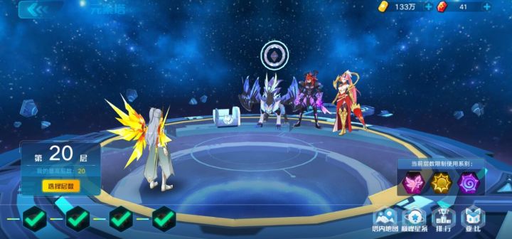 元素塔--生命之塔当你打到了第19层的时候,就会发现敌方上场boss一共有三种不同系别,之前都是两种,比较好打。到了第19层因为对面有三种不同系别的boss同时上场,这就意味着你必须承受着一个boss的克制伤害进行输出,并且越高层的boss血量越厚,相比起第19层以下的关卡有点难度,今天跟大家分享一下我的打法,可供大家参考。第19层的Boss分别是:修罗(光系),孙悟空(妖精系),后羿(暗系)。