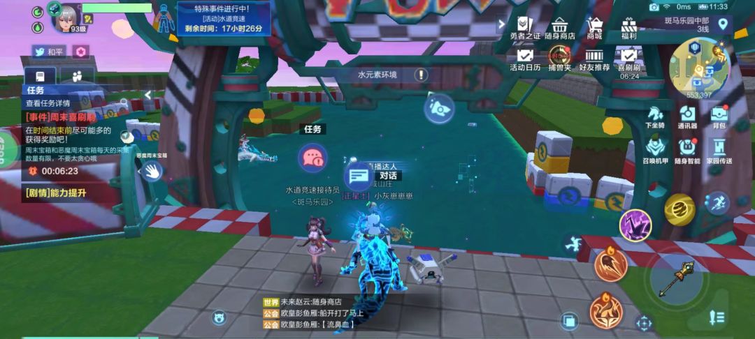 大家都知道,氪佬可以一键50元直接购买1000块晶化肉。但咱们多数,还是自力更生的底层玩家,除开平时刷蠕虫,在周末时间,喜刷刷这个限时活动,对获取晶化肉起到了不错的作用。下面,就让我们看看如何在周末喜刷刷活动期间,快速获得晶化肉吧! 1.首先我们得来到斑马乐园,这边推荐选择移速高的宠物与奶杖。 移速和奶杖,会确保你在水里移速够快,切攻击不会减速,只需刷的一下,精灵死亡掉落的两块肉就到手了。(上图为