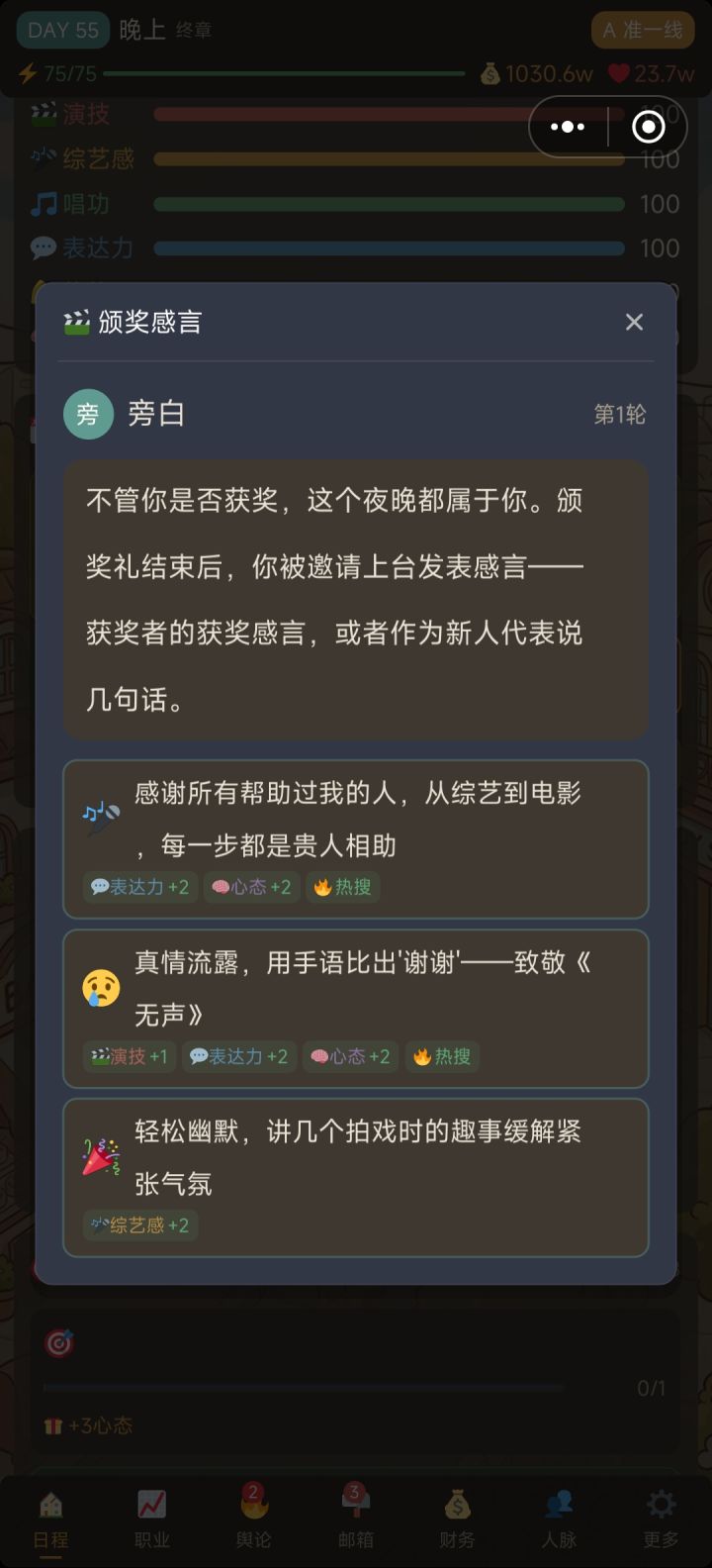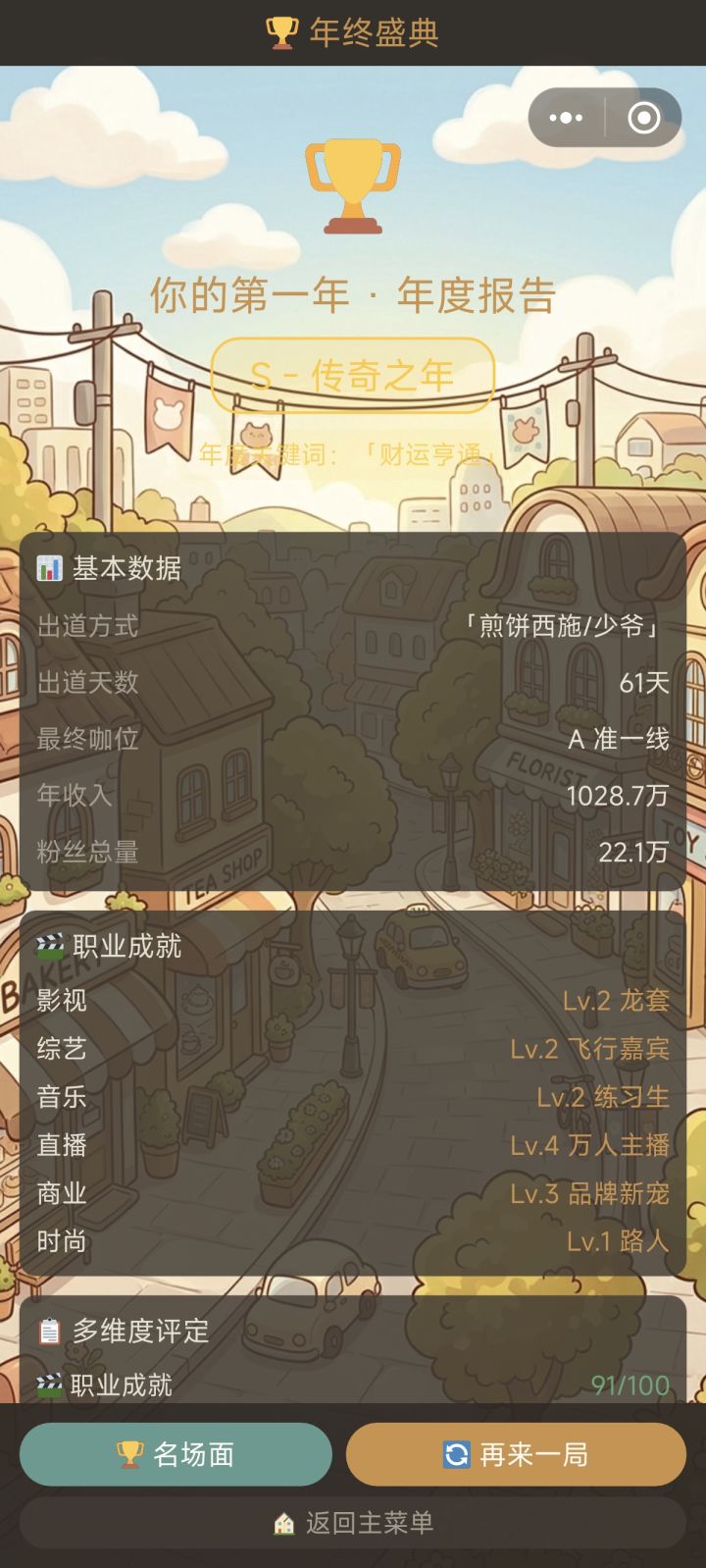 还可以吧,就是感觉不太连贯是怎么回事,属性值刷满100后,职业那里又有等级,我不知道是日常的活动能升职业等级还是接邮箱里的广告、短剧完成后升级,以至于玩到后面感觉没啥意思,然后突然就1年了游戏结束,还有那么多钱有什么用呢?