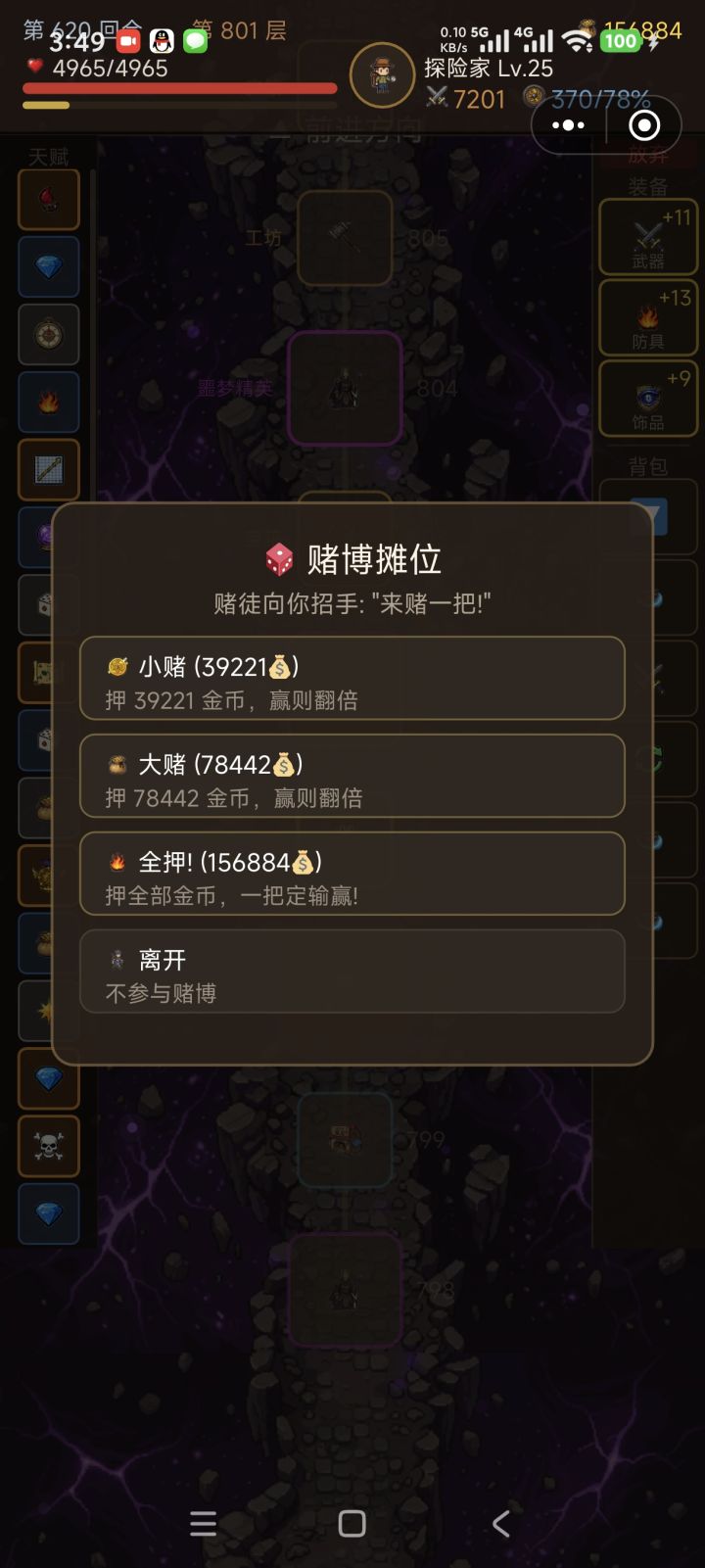 : 在底层时候把高点数骰子去点,留0和1慢点走,可以杀怪加属性,还可以通过陷阱回退来回刷boss拿天赋。一个广告不用看,可以做到无敌,想冲层的时候再拿个高点数的。秒怪秒了600多层,不爱玩退了,后面都是重复的。