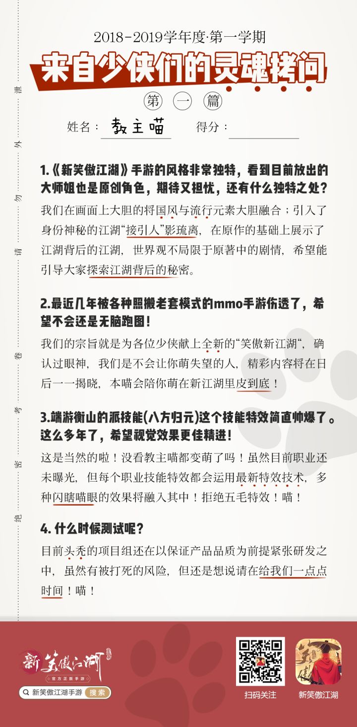 对于各位长时间的支持与厚爱,本喵和项目组无以为报,我们决定在这个夏天开始之前进行一次测试!我们非常理解各位催测的焦急心情,对于这款探索新国风领域的新品,我们也同样惴惴不安、心怀忐忑。但还好有你们的陪伴和搀扶,让我们一直坚持下来。