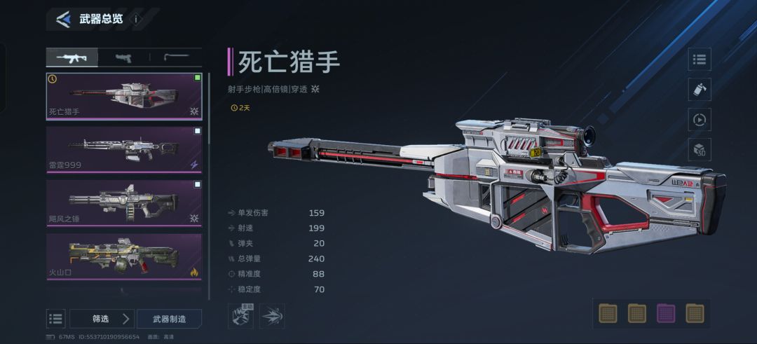 玩家ID:368985131791070 TapID:415034936 主武器一槽:超载弹匣/弱点续弹 二槽:超频蓄能/多重激返 三槽:强力火击 四槽:杀戮连锁 副武器一槽:无要求 二槽:随时待命/超频蓄能 三槽:联动提升 四槽:烈焰冲击 武器定位射手步枪,被动为当前弹匣子弹越少,发射的子弹越多(不额外消耗子弹),例如当当前弹匣子弹为1时可以一下打出5发子弹。主动技能和复合弓一样,所