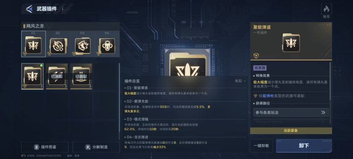 因为独头弹的收束效果,导致了它与上面的那两个12号插件的适配性非常的高,再配合近战或者是其他的3号位增伤插件比如说射击增强,它的伤害基本上是最高的那一批紫枪了。