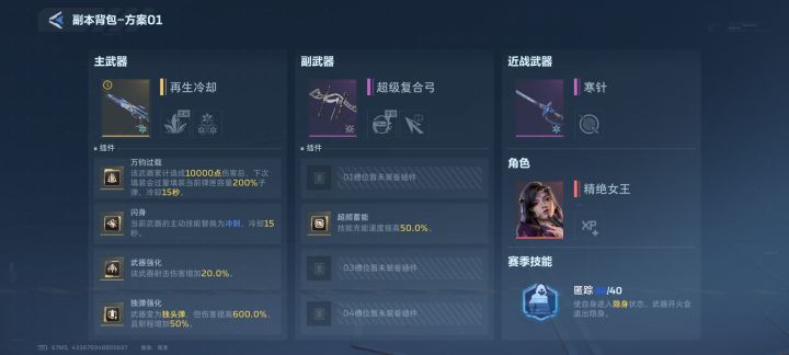 副武器的话,随便带插件吧,就往功能性那带就行,复合弓只要加快技能CD的插件就行,这样基本上就是完