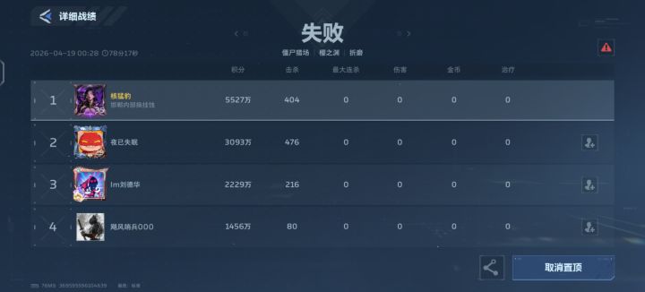 五千多万伤害,复活币全出,帮打金币。输了
