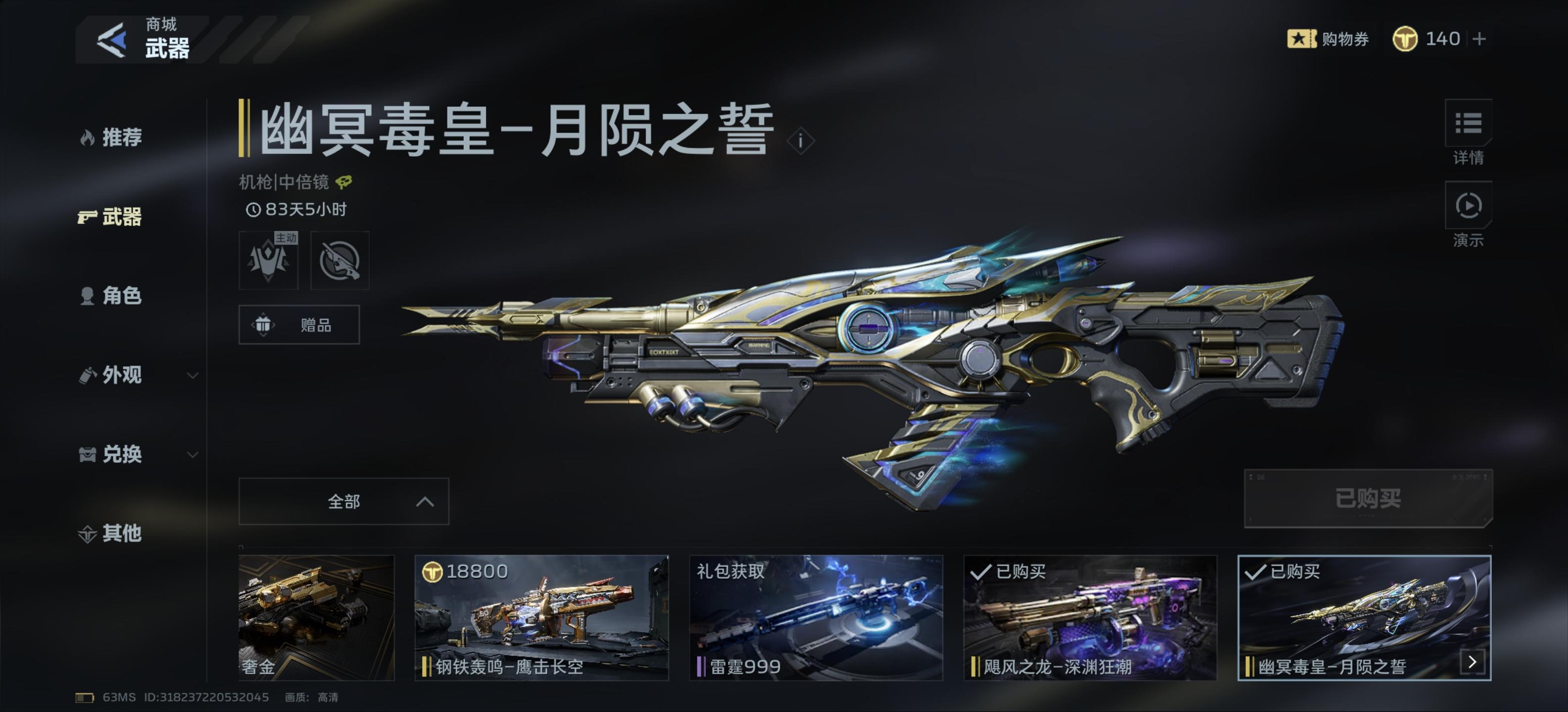 先目前我个人使用这四把枪习惯。死神暴击率,技能核弹不放,吃狂热被动。副武器带振炫,带插件随身待命天赋机械近战武器带死亡之拥。(没刷出来)飓风之龙爆发流,打boss专用,用普攻形态打boss,快要破韧,模式切换龙炎形态,放天赋技能然后秒取消,血量直接嗖嗖掉。副武器带复合弓,带插件随身待命天赋急冻近战武器是冰点起源的金色近战武器(没刷出)剩下两把刷钱用的,不用过多介绍了,配合天赋的无
