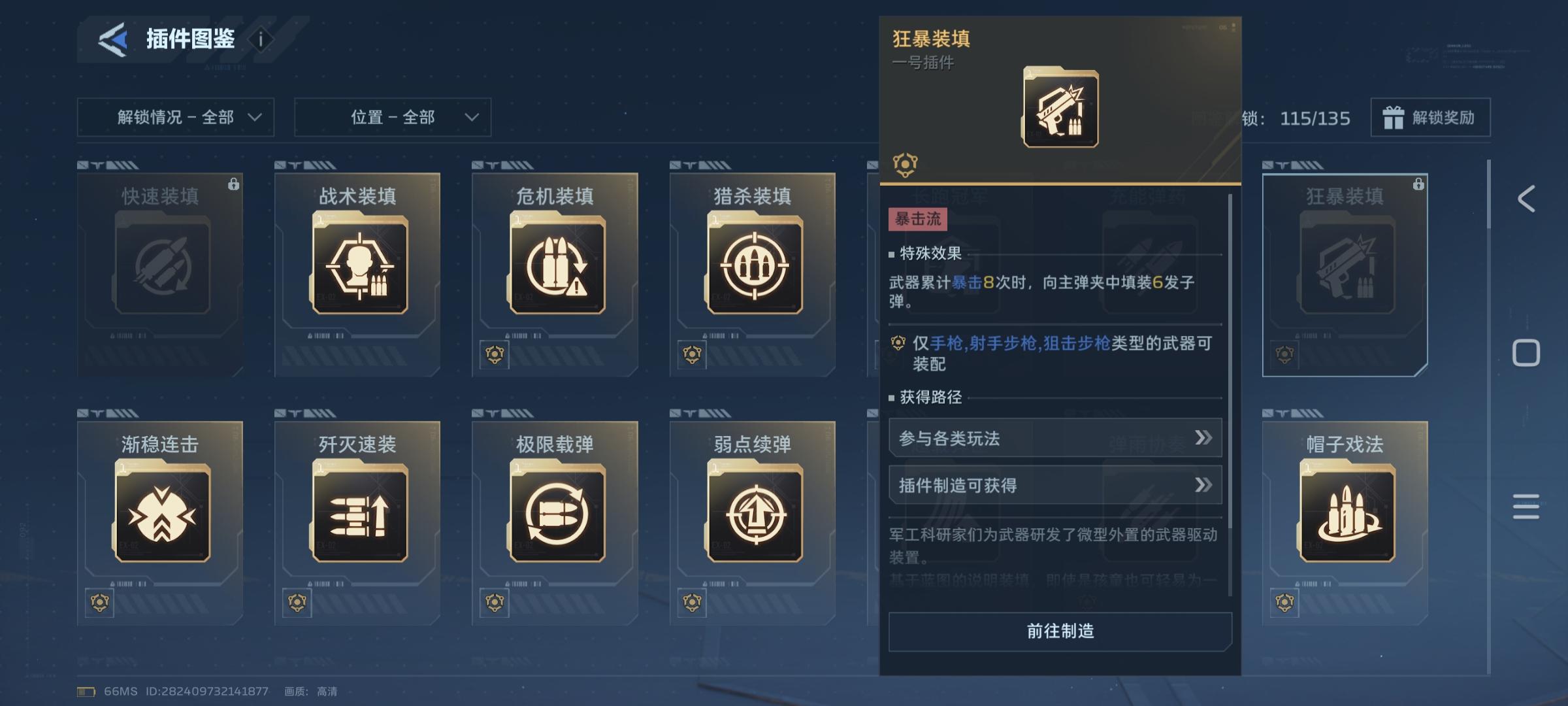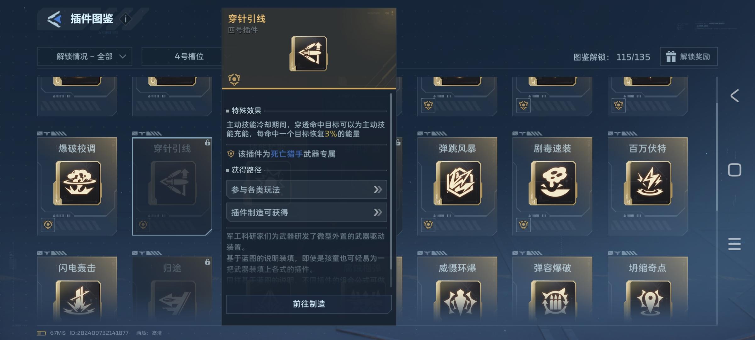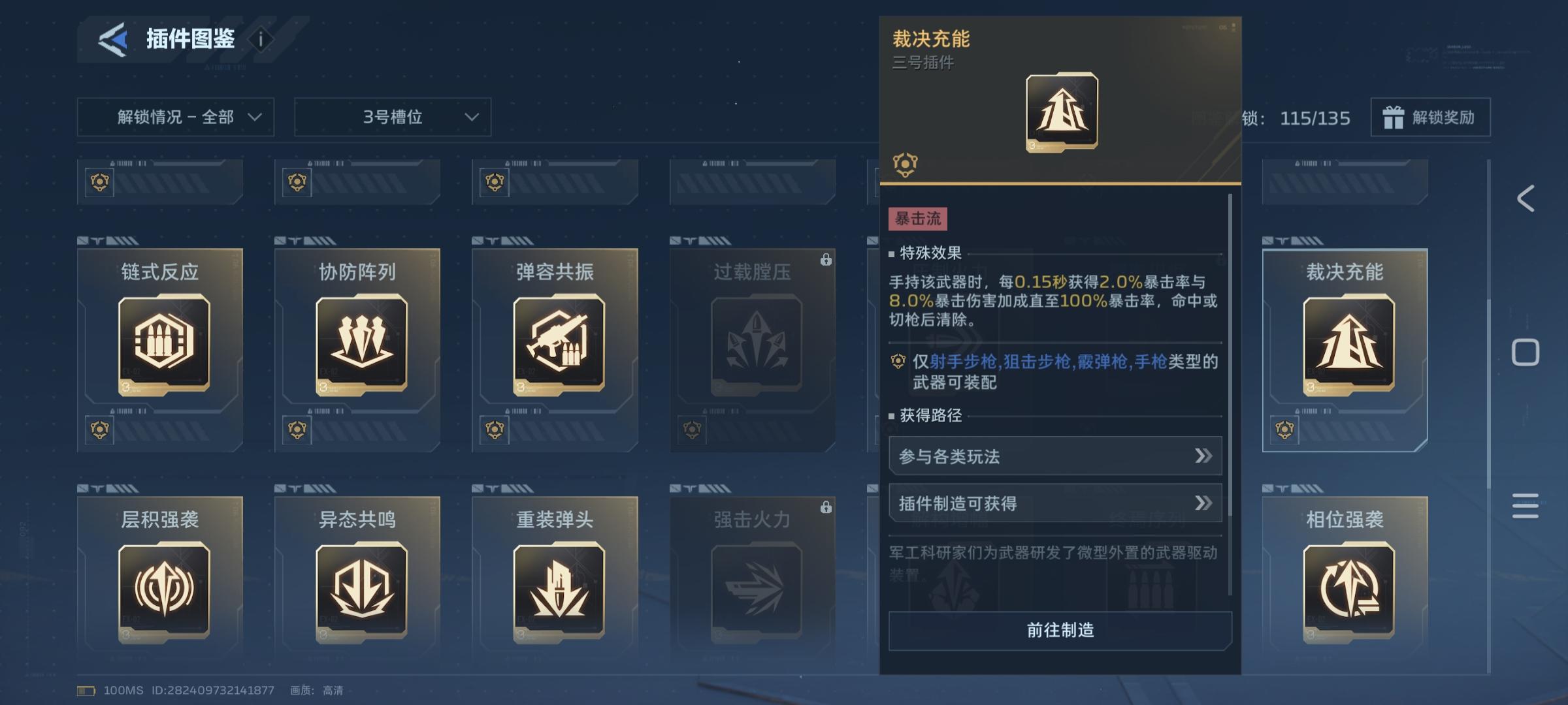 主武器插件选择一号插件:狂暴装填每暴击八次回复子弹二号插件:暴击涌流每次暴击为武器主动技能充能三号插件:裁决充能手持武器每0.15秒就可以叠加暴击率和暴击伤命中后清楚四号插件:穿针引线穿透目标每命中一个目标可以为主动技能充能副武器可以搭配振铉,副武器可以只要随时待命插件给技能加快充能如果死亡猎手一号插件觉得卡手可以把一号插件换成充能弹药保持子弹充足死亡猎手的主动的射速配合暴击
