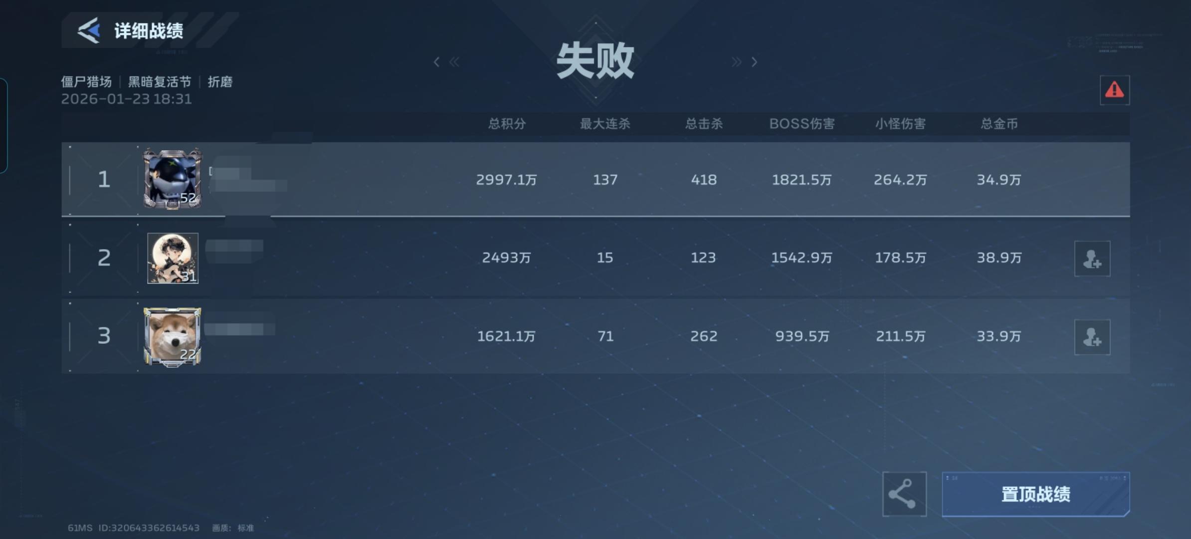 第一把,一个勾在打骑士的时候全程用钢铁轰鸣打,第一次团灭他没用纯白,导弹也在前面放了,没伤害团灭。队友也不怎么会卡复活,第二次死了两个,放团灭技不复活币。第三次我卡复活,3队友全被一刀打死,绝望的一批,45分钟受不了不复活了。第二把,一个队友骑士全程不打输出,纯混过去。还有,我想问下为什么打完这几个勾都不显示数据,只显示3个人的。