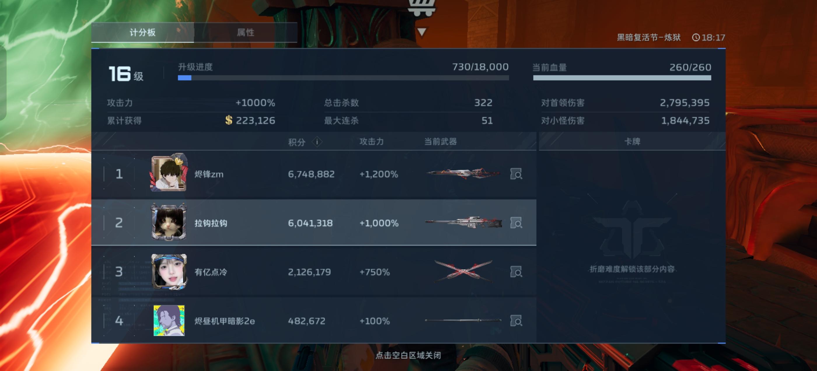 我真服了啊,这打boss了还100攻击,不打伤害就算了,还不分钱,我还是半路匹进去的,你游在这么搞。谁还匹配