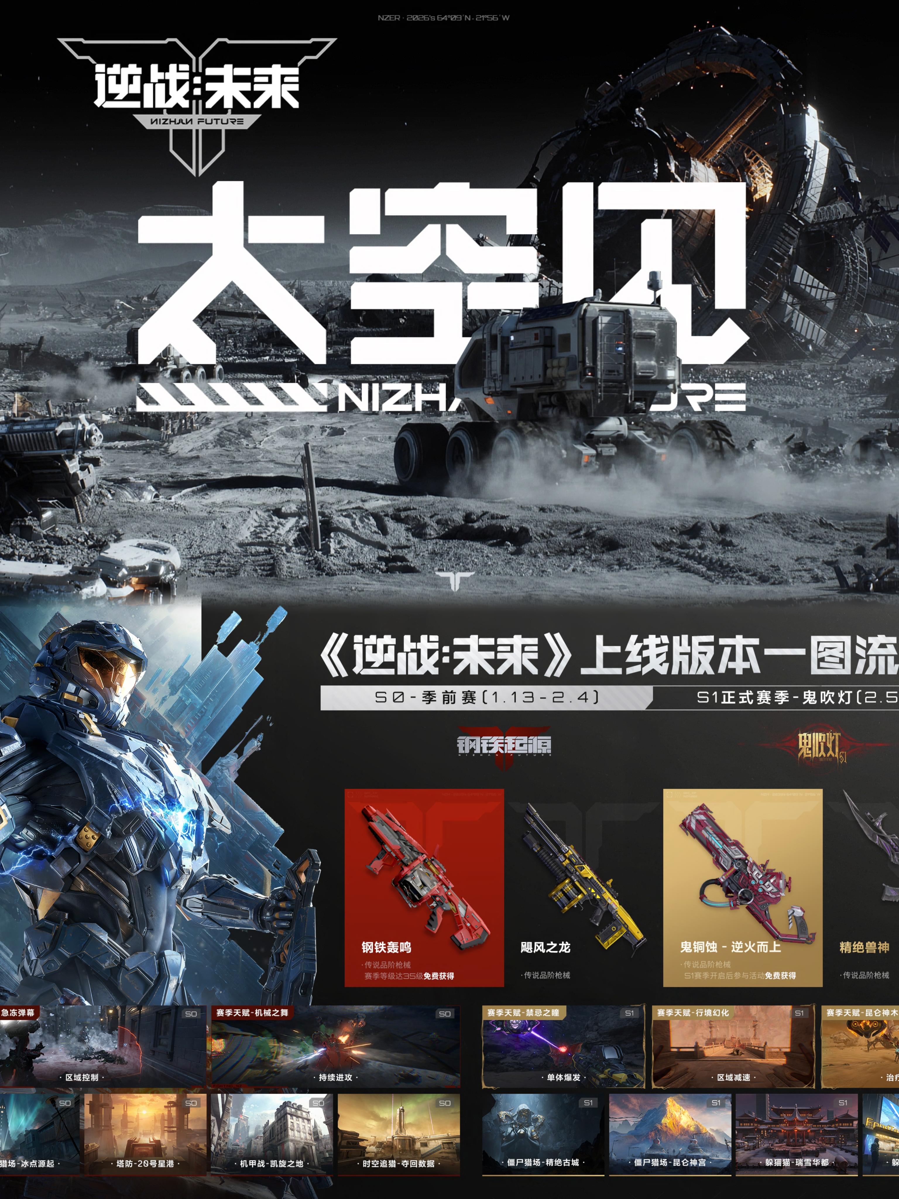 《逆战:未来》赛年前瞻特别节目—琳琅上天计划精彩内容回顾:1.S0(季前赛)钢铁起源:六大玩法模式多张地图上线、并带来张杰联动武器等多个福利内容。同时已针对PC版本品质完成阶段优化及各类任务系统简化,真正做到低压爽玩!2.S1鬼吹灯联动赛季:上线鬼吹灯联动猎场地图精绝古城、昆仑神宫,及全新赛季天赋。同时新增躲猫猫玩法并上线2张地图。3.S2战火樱之城赛季:包含经典内容归来,新增刀战PVP和团