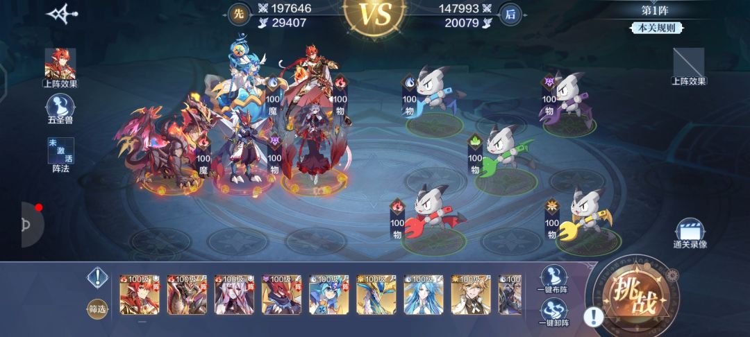 测试期间体验了一下战术玩法,初、中级都很简单,看提醒布阵就能达到完美评价 高级就需要点策略了,这两边都是一样英雄,但站位不同结果不同,想完成完美评价是有难度的,我也调换位置多打几次才完成 不得不说,火系是真的难打 建议玩家公测后主玩火队吧 好了你们看图去通关吧 水战术 草战术 火战术