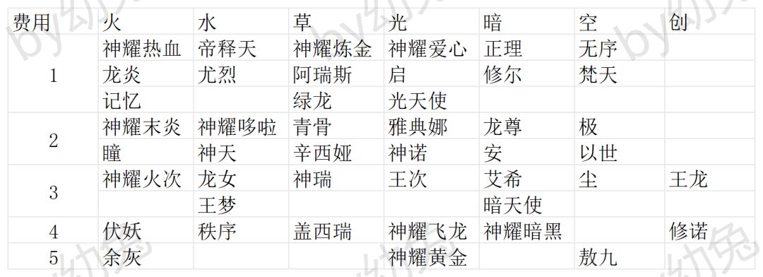 创队: 创队虽然我以前讲过,但是今年的创队与以前的创队天差地别。你以为我会这么说吗?但实际上今年没有创队,哈哈哈,创队,小丑了吧,草队好歹还有草队,就是英雄技不是很强。今年创系只能用八个字来形容,三无产品,全员恶人。首先今年创系有两个分身,一个是龙梵,另一个是神曜王者圣龙。龙梵因为自带控制,所以不管是pvp和pve,都多在火队就业。王者圣龙加强的不错,而且打克制伤害也是创系里面最高的,三色精灵只要