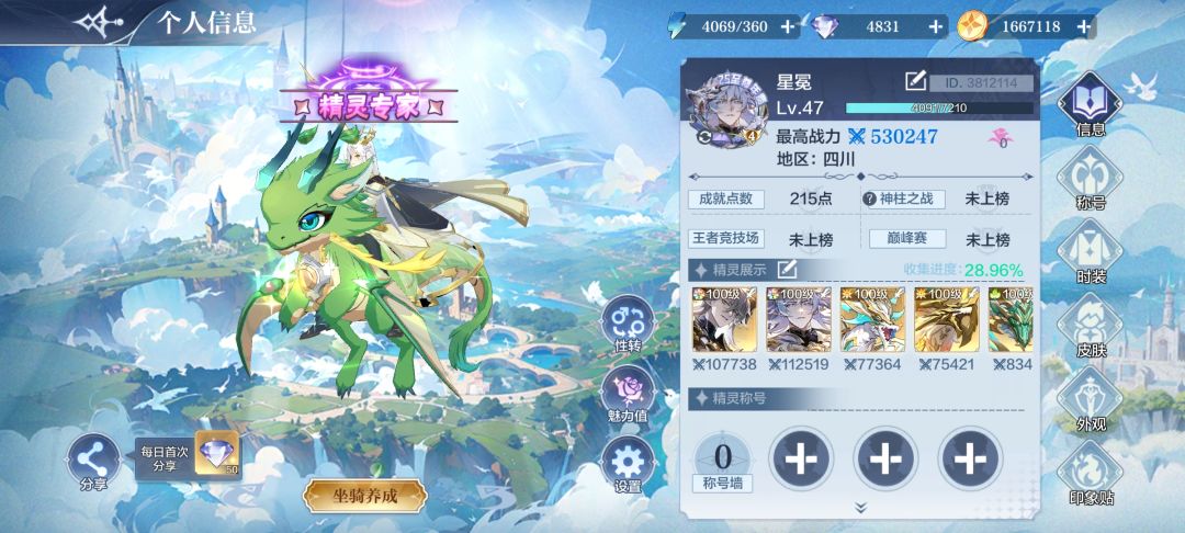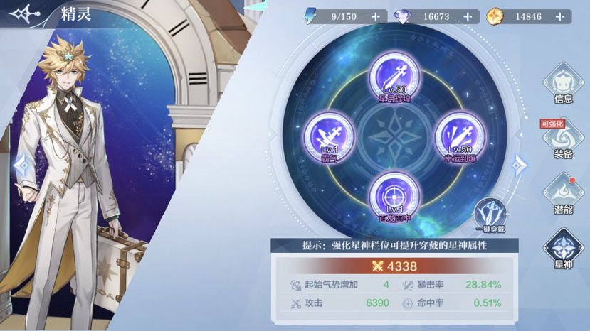 战力分为公共战力及精灵战力,二者战力相辅相成,是提升总战力的途径 公共战力加成: • 属性坐骑(一只1W8左右加成) • 守护(爬主塔和属性塔) • 收藏品(每日暗影来袭) • 阵法(魔王boss会掉落升级阵法的碎片) • 好感度(筛选加战力的属性精灵) • 图鉴(精灵收集及觉醒) 精灵养成度: • 觉醒(6觉满觉) • 装备(神器+1最高,属性装+2最高) • 星神(每个槽50级