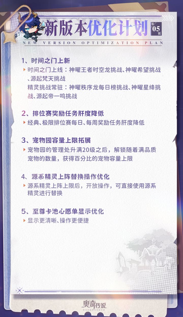 为了保证奥奇大陆的正常运行,带给大家更好的游戏体验,奥奇城管理局预计于3月5日16:00-3月5日18:30进行一次停机维护更新,维护期间玩家将无法登录游戏。维护完成后,将为大家发放更新补偿:钻石*300+体力*120+金币*10w。维护时间视更新情况可能会有调整或延长,详情请关注官方最新动态。一、【新春登录礼】登录即领红星碎片&气吞山河●3月6日5:00解锁领取累签10天:体力*5000累