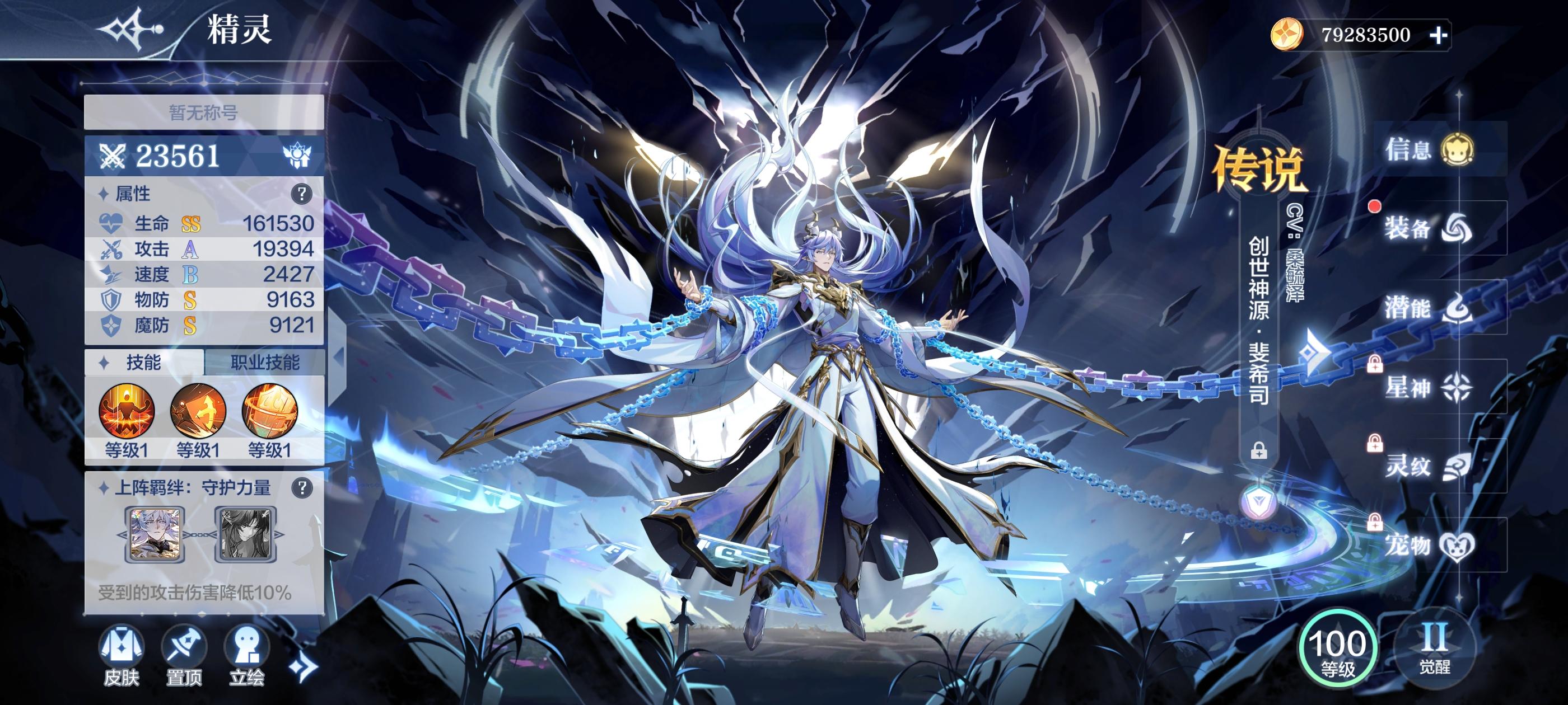对于可预见的未来,精灵会是顺势而为,还是沉沦迷失?生命的魅力来源于无限的可能性,当既定的命途不再自眼前浮现,梵天将亲自书写自己的命运。“在下仰观天象,算得今日定当与故友重逢。卜卦之人梵天,于此恭候。”◇精灵定位◇通用英雄 命运之锁◇精灵属性◇空◇精灵职业◇魔法,源起,英雄◇属性评分◇生命:A|攻击:SS|物防:B|魔防:A|速度:S◇技能介绍◇【被动技:星轨步演】1.自身首